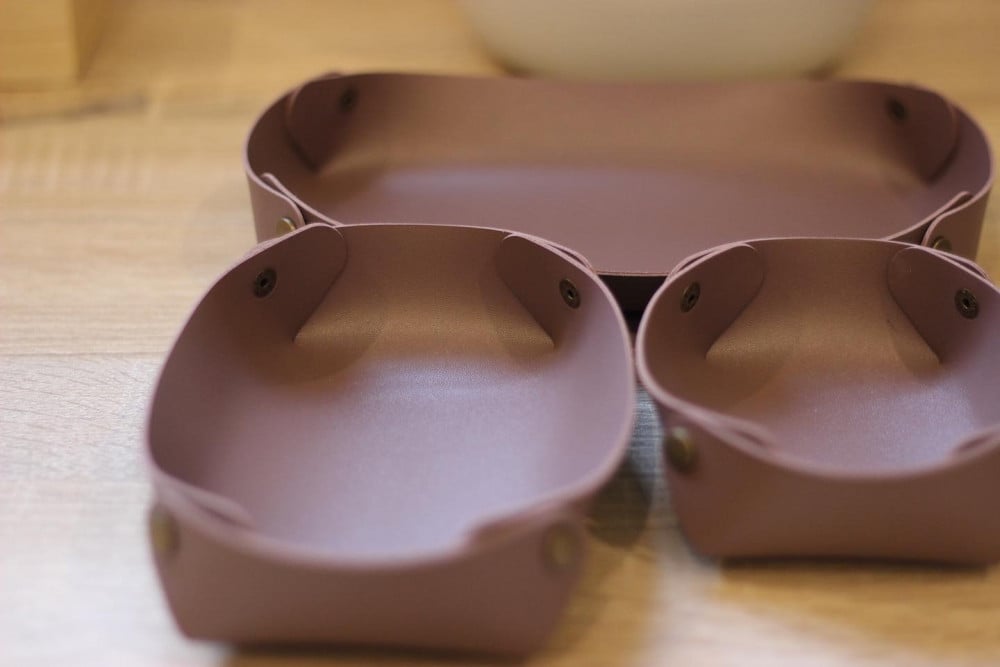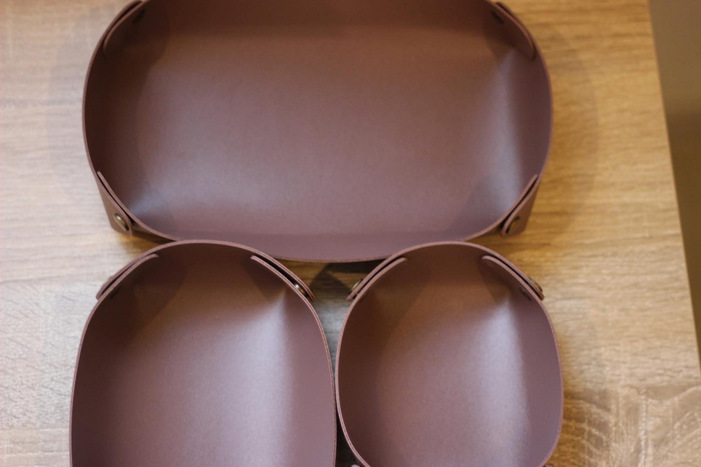 سلة جلد لمكتبك او منزلك او توزيعات بالأسم او الأحرف المطلوبه لون بني