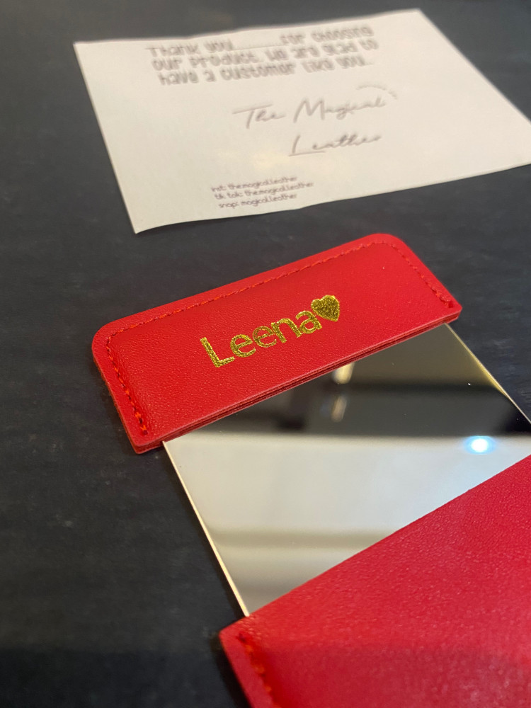 مرايا صغيرة للشنطة، سوف تكون هديه قيمه ومميزه جدا للاشخاص المقربين اليك خاصة بعد كتابة اسمهم بشكل أنيق على الجلد باللون المفضل لديهم، اطلبيها الان من متجرنا.